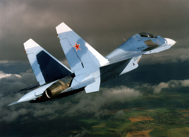 Su-30 (Su-27P) is a two-seat long-range intercept fighter that first flew in December 1989, and entered service with the Russian air forces in 1992. The Su-30 created in Irkutsk. Largely based mostly on the Su-27UB two-seat trainer, it's a new radiolocation system which can transmit the positions of 10 targets to four different fighters at the same time. The the so-called Su-30 series of aircraft began with the Su-27M - in effect a concept demonstrator renamed the Su-35 - the Flanker has evolved into the Su-30 multirole fighter, the Su-32 and Su-34 tactical bomber, and also the Su-33 naval variant. The leading visual difference between the Su-30K and the Su-30MK are canards just under & slightly behind the rear cockpit, TVC nozzles and a twin wheel nose landing gear.